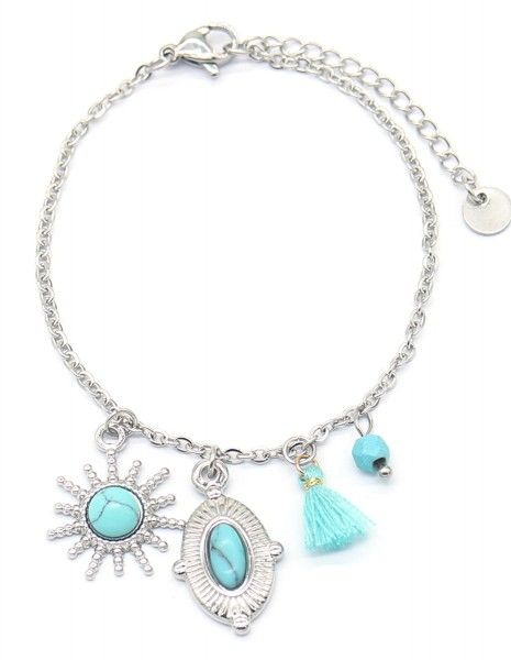 Zilveren armbandje met turqoise bedeltjes